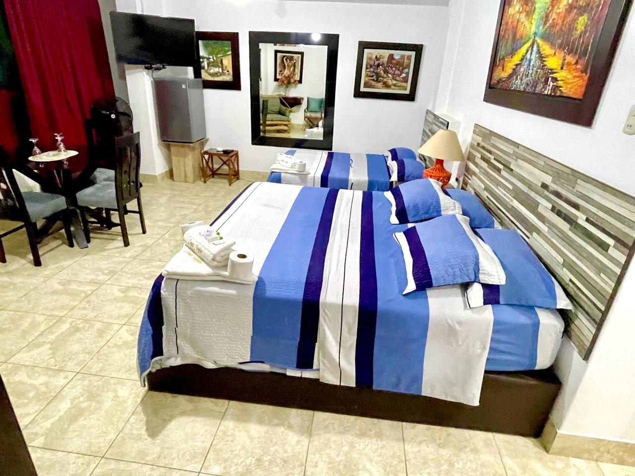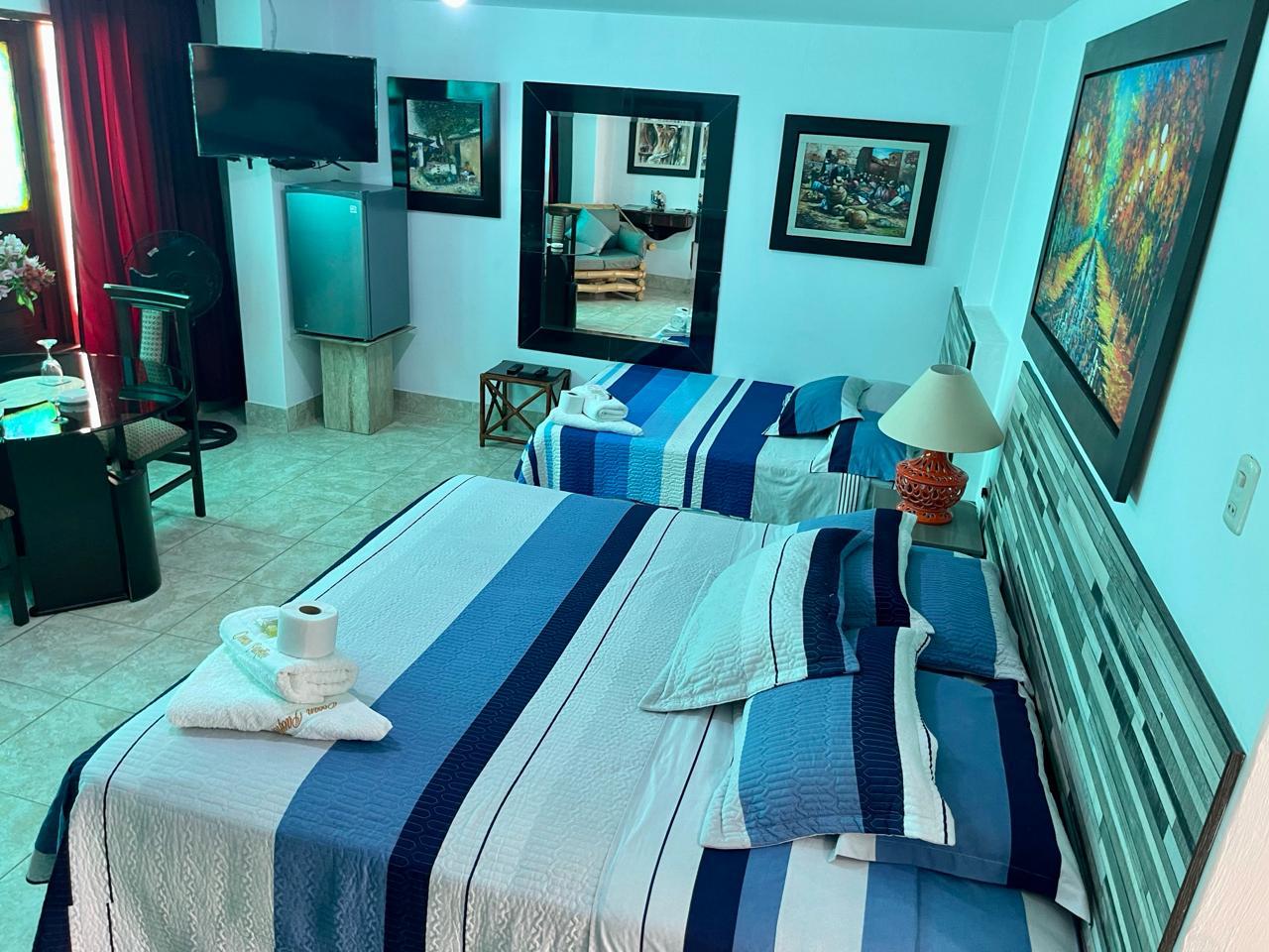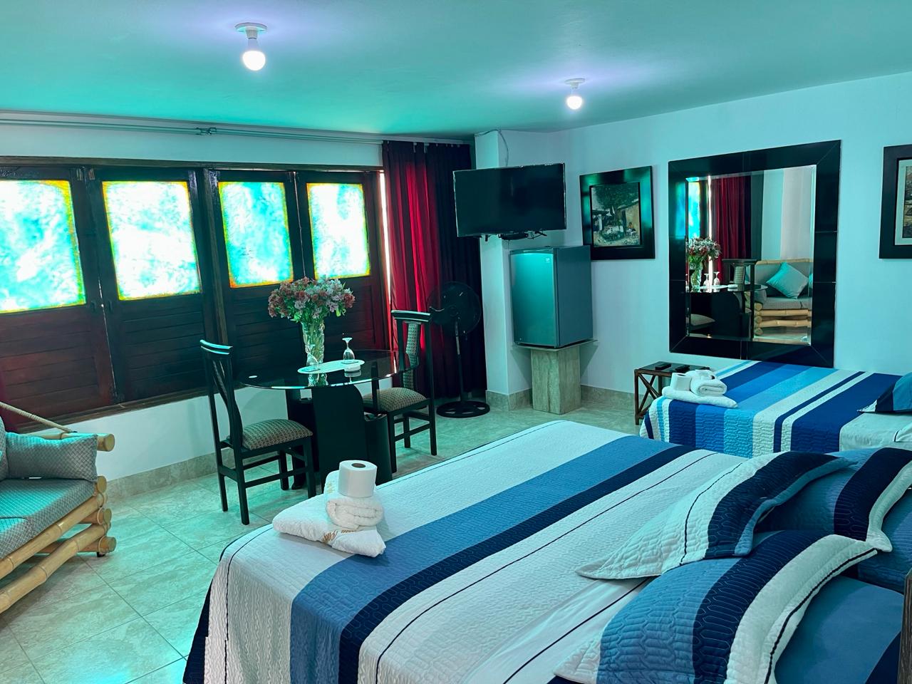 Espaciosas, confortables y modernas habitaciones de 48 m2 con salón integrado,2 camas, cama de matrimonio (King size), y otra cama de matrimonio (2 plazas) con capacidad para 4 a 5 personas, acceso gratuito a Internet (WiFi) de alta velocidad, escritorio con silla, caja fuerte, mini bar y un completo cuarto de baño.